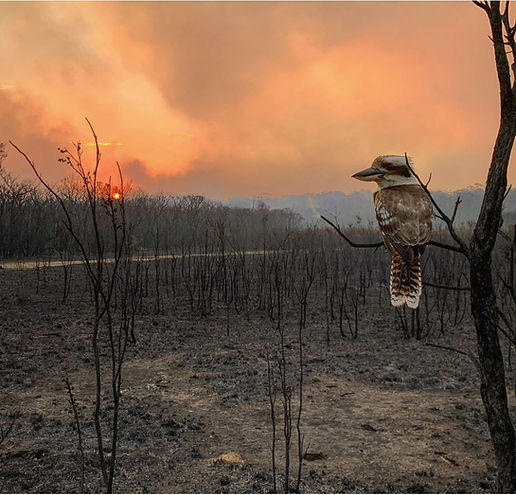 "As we were on the way back home we spotted the kookaburra sitting in the tree laughing. I decided to take a photograph. The bird let me walk right up to it, snapping away on my iPhone. It was looking at me as if to say: “There’s nothing you can do that is any worse than what sits in front of us.’ We both watched the sun setting over the apocalyptic landscape."